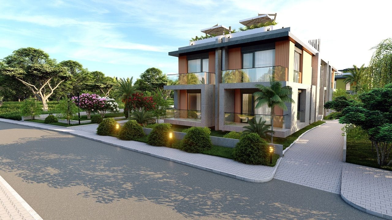 Комплекс будет состоять из двух двухэтажных домов. Блок А – 12 квартир и Блок В- 8 квартир. У квартир на 2 этаже этаже будет своя отдельная терраса на крыше со встроенной системой барбекю и выводами под краны и джакузи. У квартир на 1 этаже будет свой участок под сад или зону отдыха.