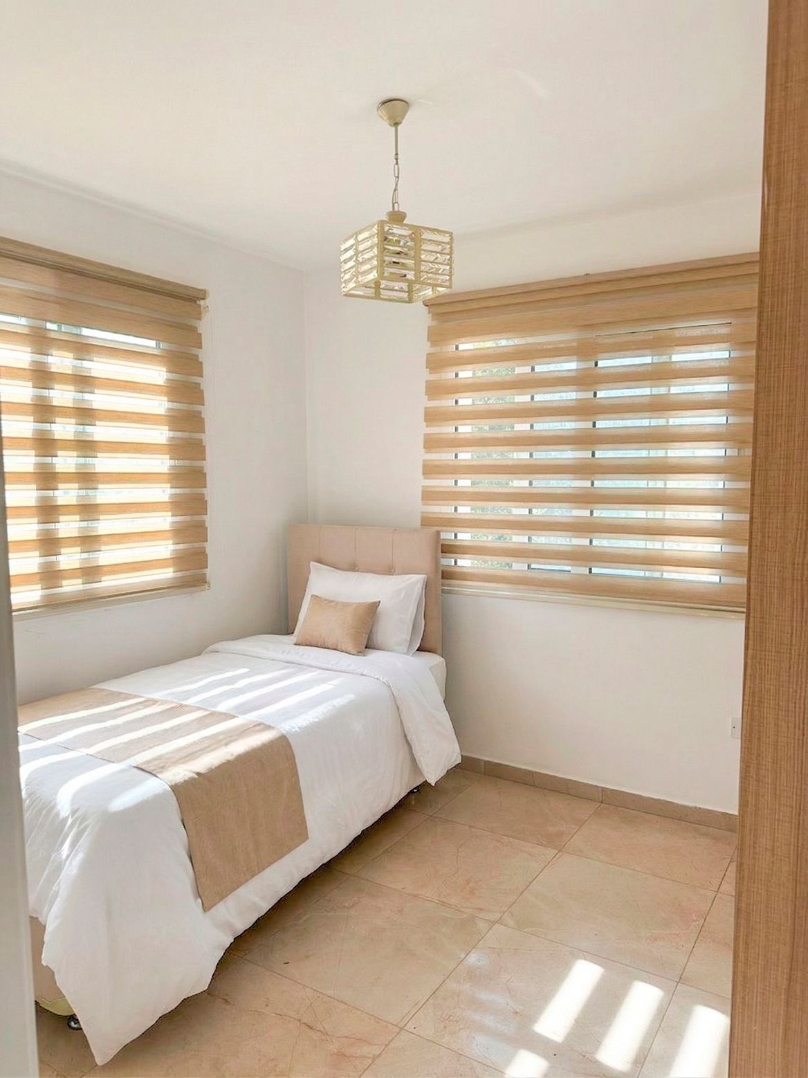 4-комнатные апартаменты в стиле loft, площадью 110 м², расположены на первом этаже и имеют балкон с выходом прямо к бассейну. Подключение коммуникаций включены в цену. Дом находится в районе Алсанджак, одном из самых красивых и популярных районов Северного Кипра. Поселок расположен всего в 9 км к западу от Гирне (Центральной Кирении) и славится своей уютной кипрской атмосферой, потрясающими видами на море и горы, а также отличными пляжами и ресторанами.
