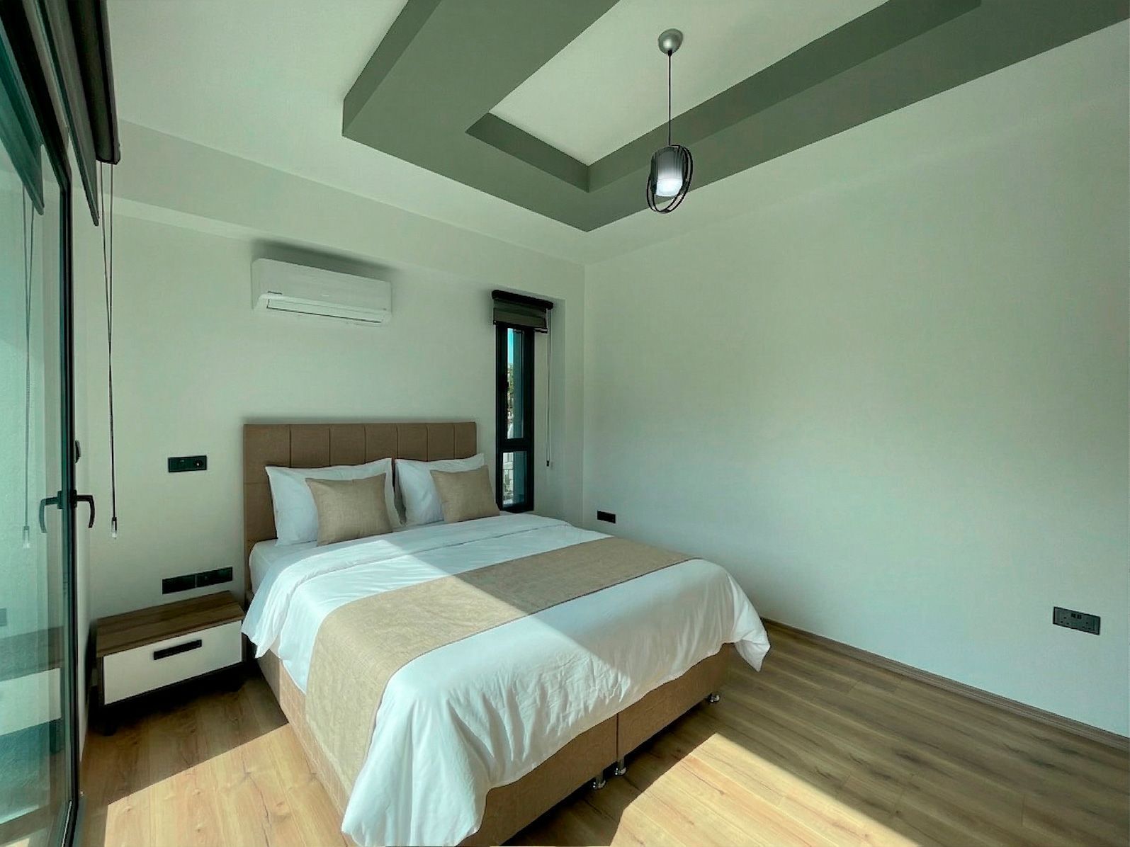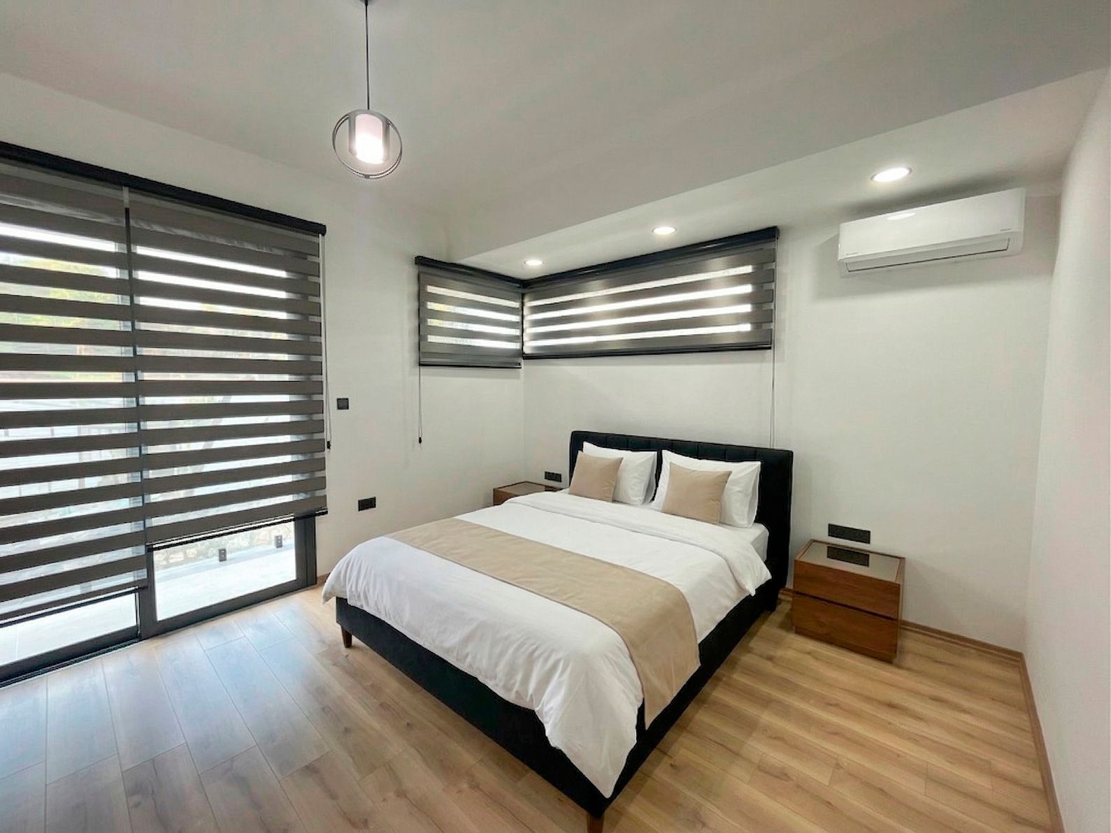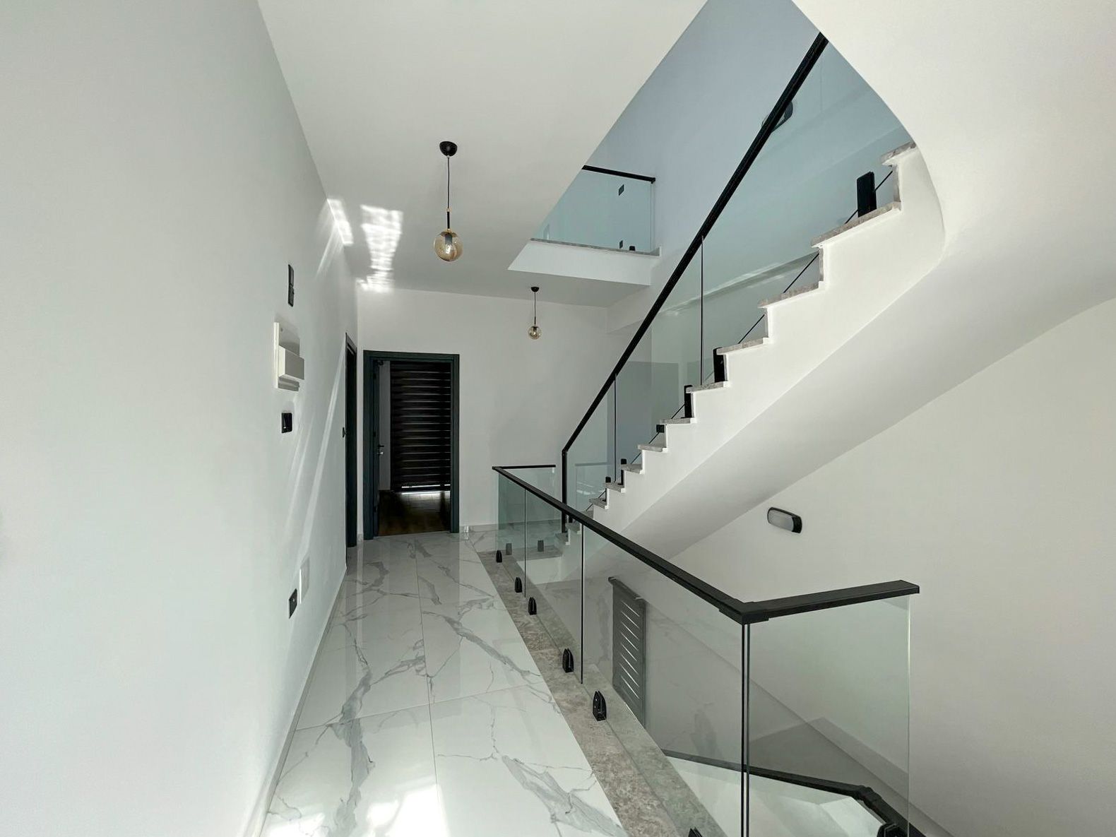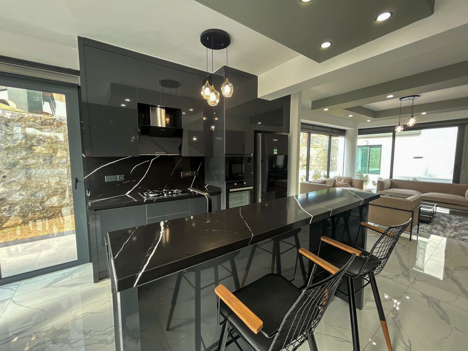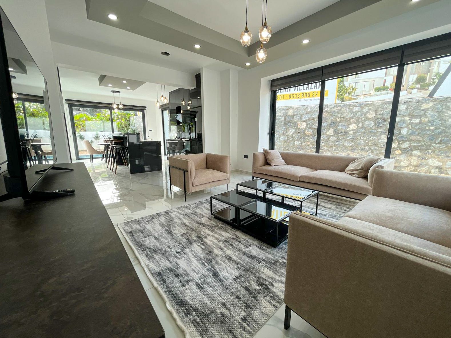 На участке есть бассейн, зелёный сад и парковка. Входит в небольшой комплекс из шести вилл, каждая из которых ограждена собственным забором, что обеспечивает дополнительную приватность. Расположение удобное: поблизости вся городская инфраструктура, магазины, рестораны, а до центра Кирении можно добраться за считаные минуты.