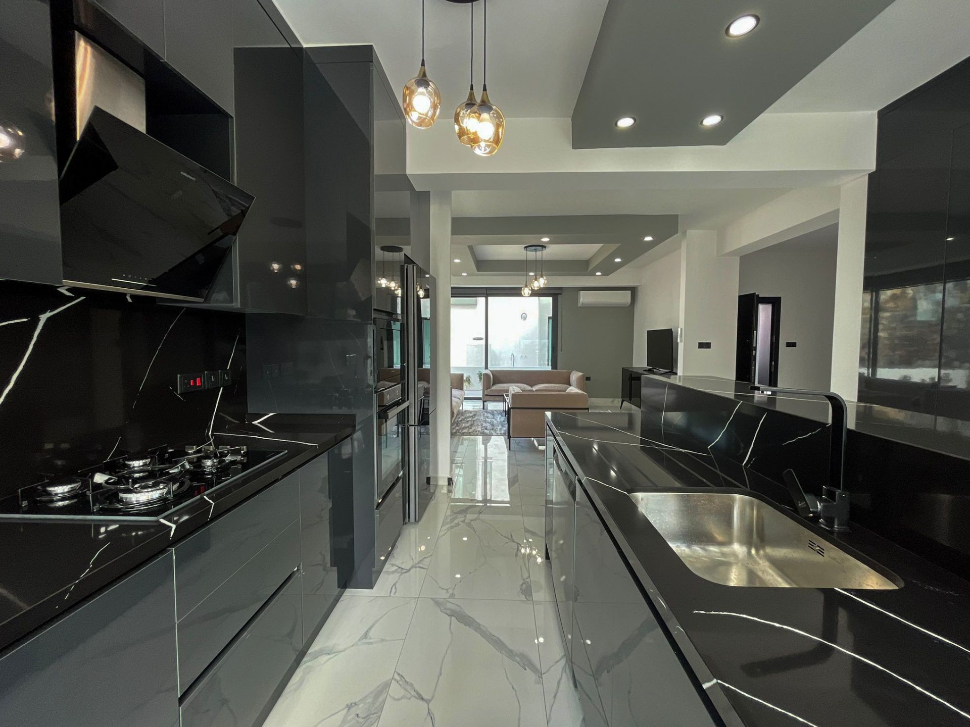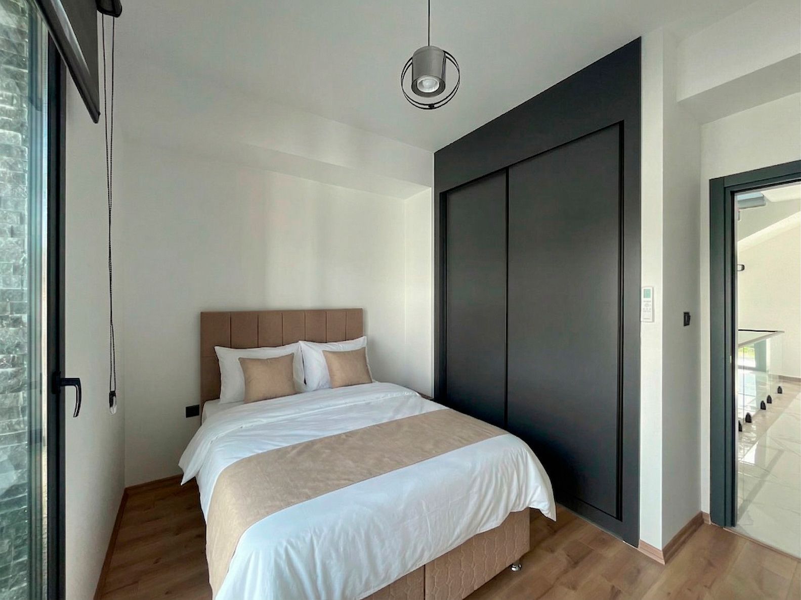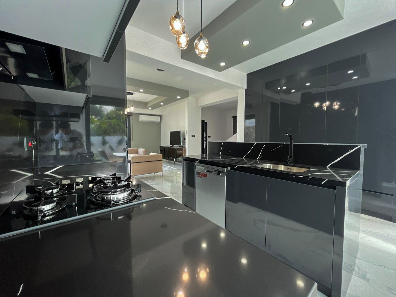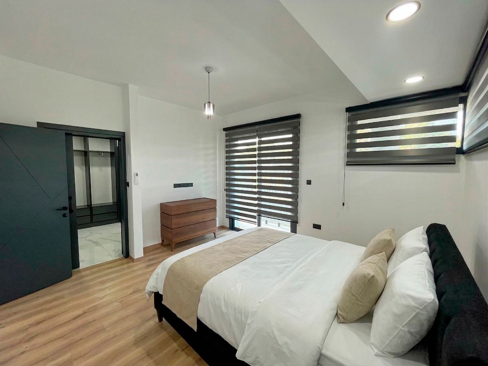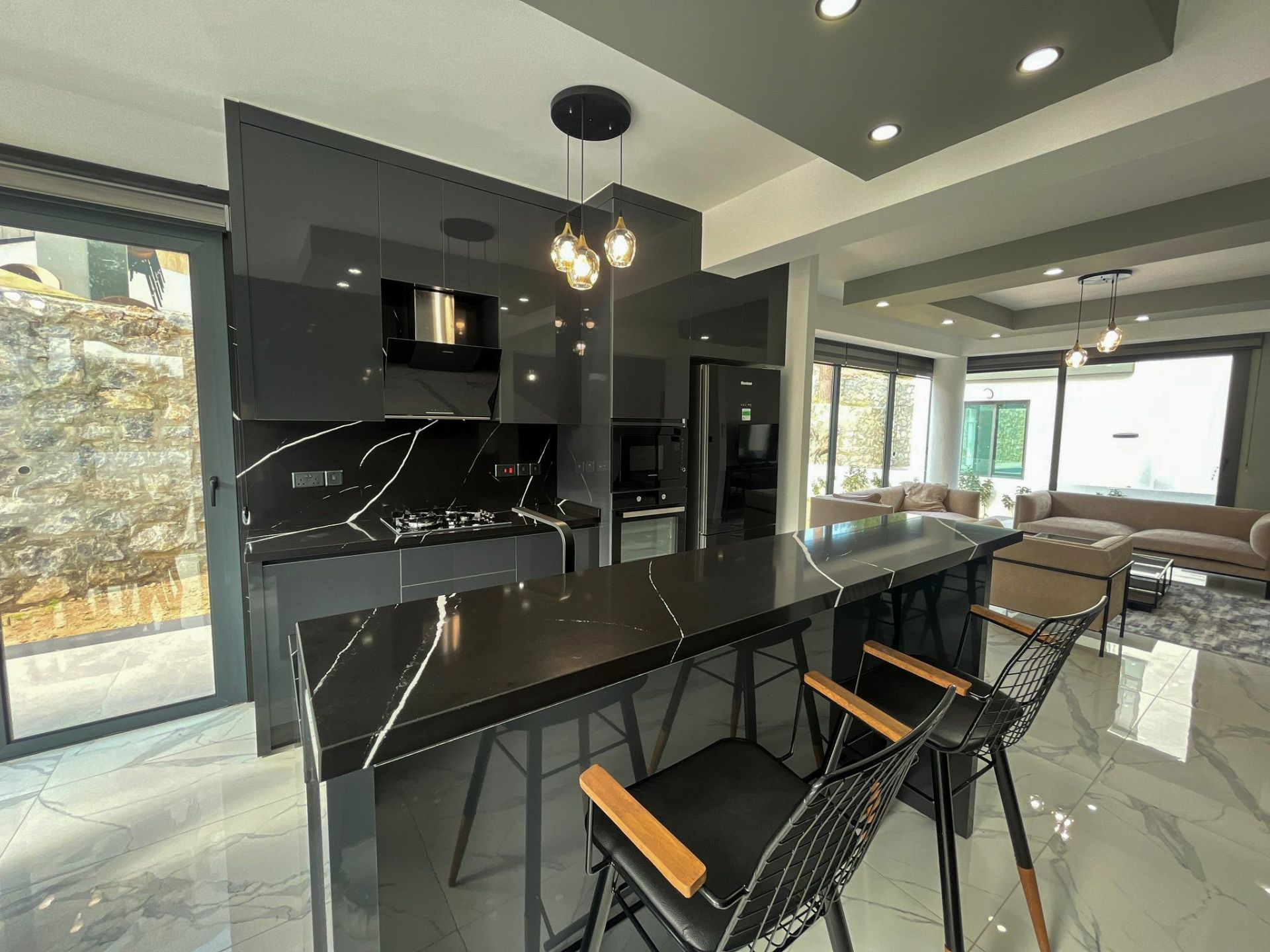 На участке есть бассейн, зелёный сад и парковка. Входит в небольшой комплекс из шести вилл, каждая из которых ограждена собственным забором, что обеспечивает дополнительную приватность. Расположение удобное: поблизости вся городская инфраструктура, магазины, рестораны, а до центра Кирении можно добраться за считаные минуты.