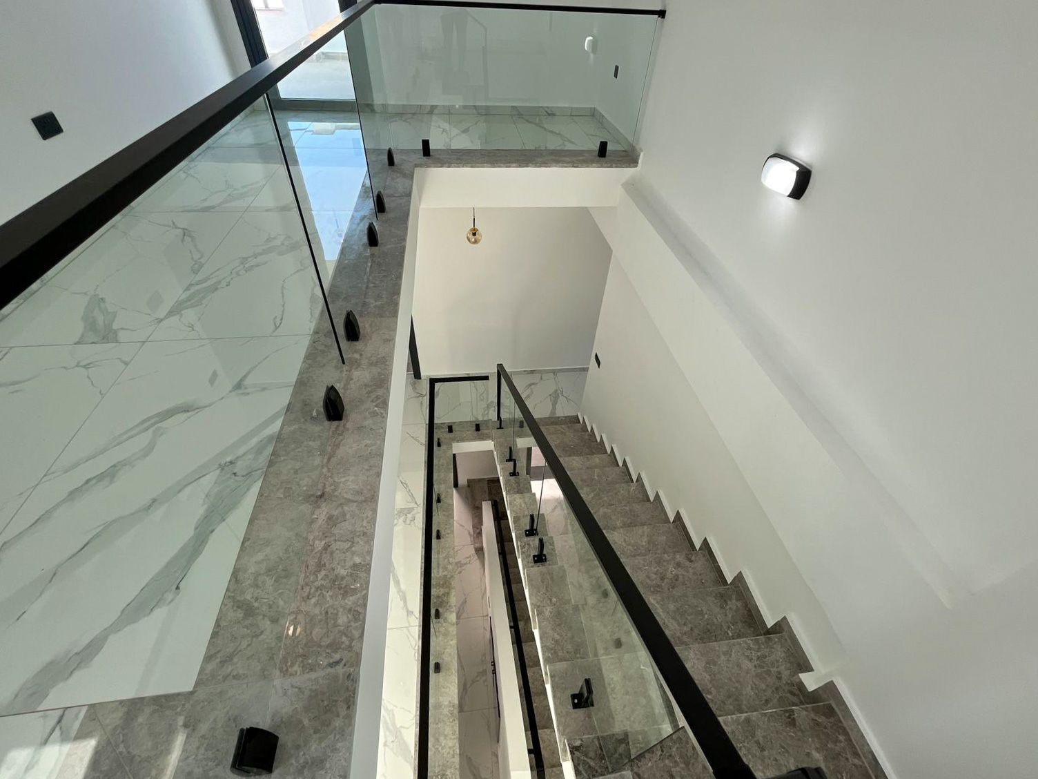Эта вилла — отличный вариант для тех, кто ищет просторный и удобный дом недалеко от центра Кирении. Общая площадь составляет 550 м², из них 230 м² — жилая. В доме три этажа, на крыше — большая терраса с крытым выходом, где можно обустроить зону отдыха или барбекю. Три спальни, включая мастер-спальню с собственной ванной комнатой, гардеробной и выходом на террасу. Также предусмотрены постирочная, кладовая под лестницей и инфраструктура под установку камина.