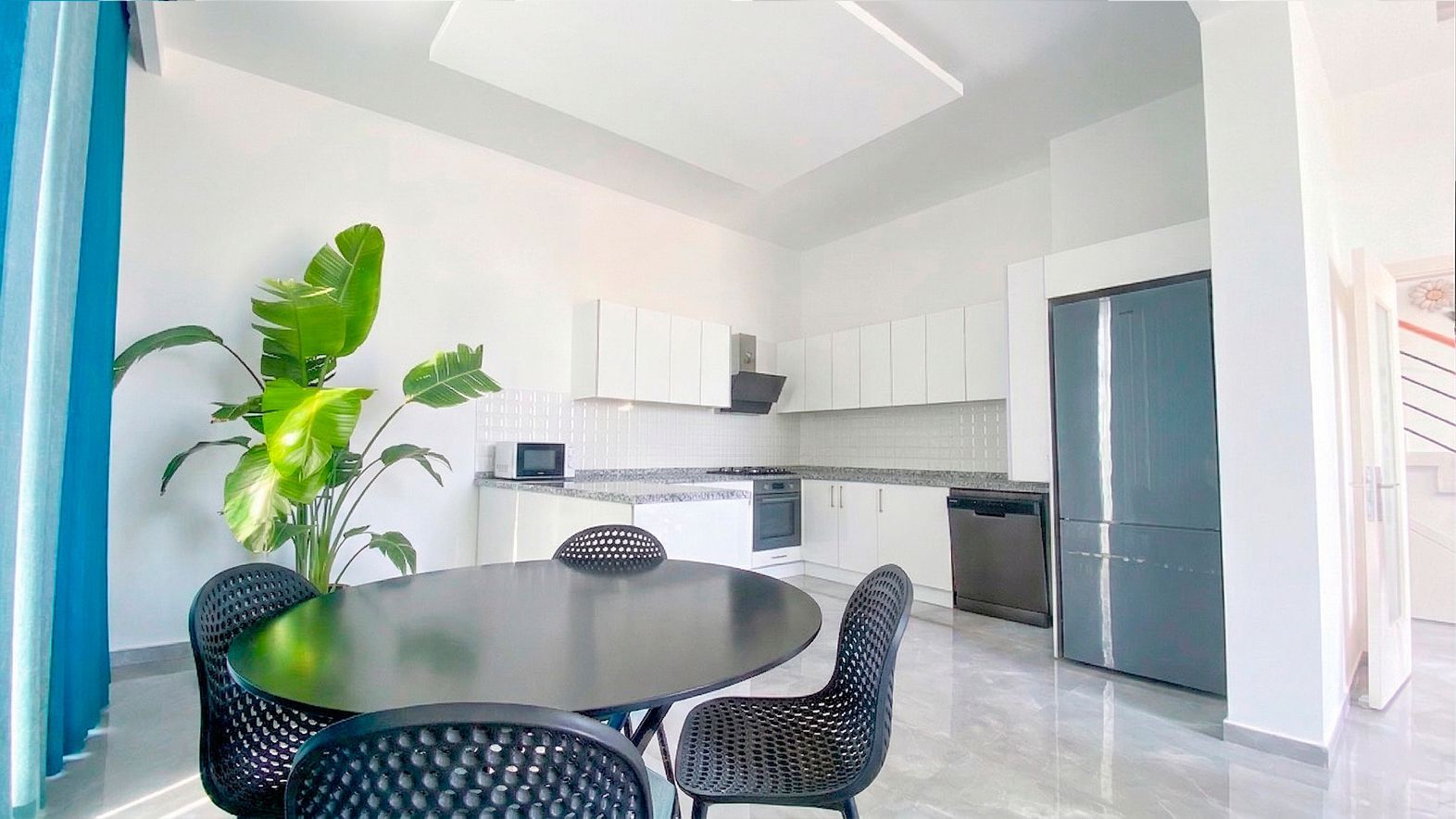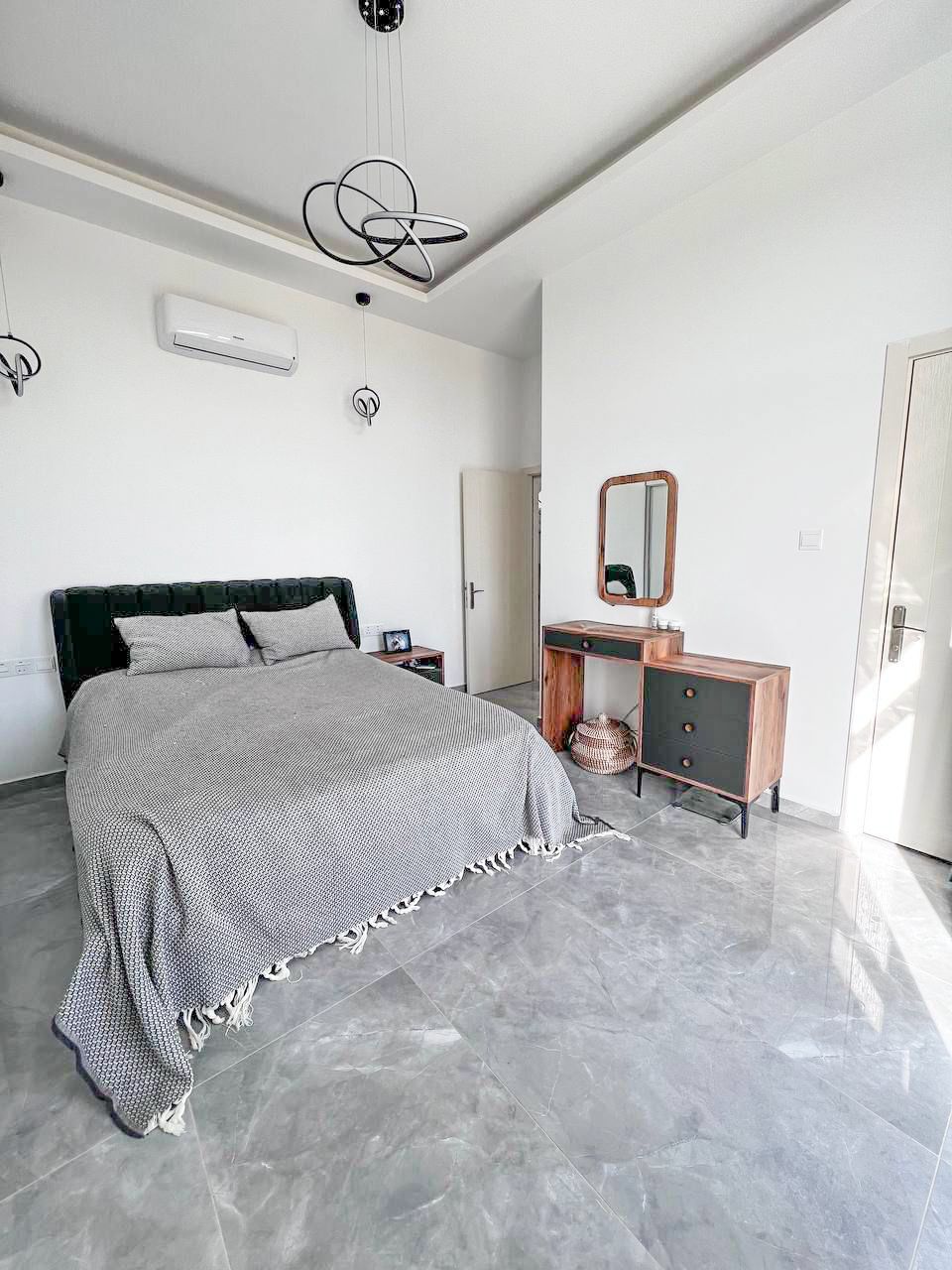 Этот уютный комплекс в зелёной и тихой зоне Лапты идеально подходит для комфортного проживания. Вилла с полной чистовой отделкой оснащена качественной кухонной мебелью, современно обустроенными тремя санузлами и просторными встроенными шкафами. НДС и подключение коммуникаций включены в цену. Особым преимуществом является её удачное расположение, всего 5-10 минут ходьбы до кафе, супермаркетов, пляжей, аптек, банков и одной из лучших частных школ Кирении, Necat British College.