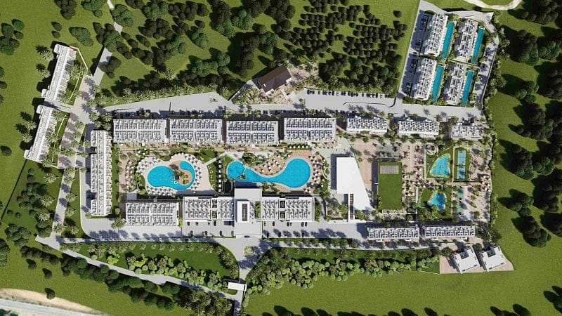 На территории действует закрытая охраняемая зона с круглосуточным видеонаблюдением, лобби и стойкой ресепшн. К услугам жителей и гостей — основной ресторан, кафе и бар, семейное кафе, а также несколько бассейнов, включая главный и отдельный детский.