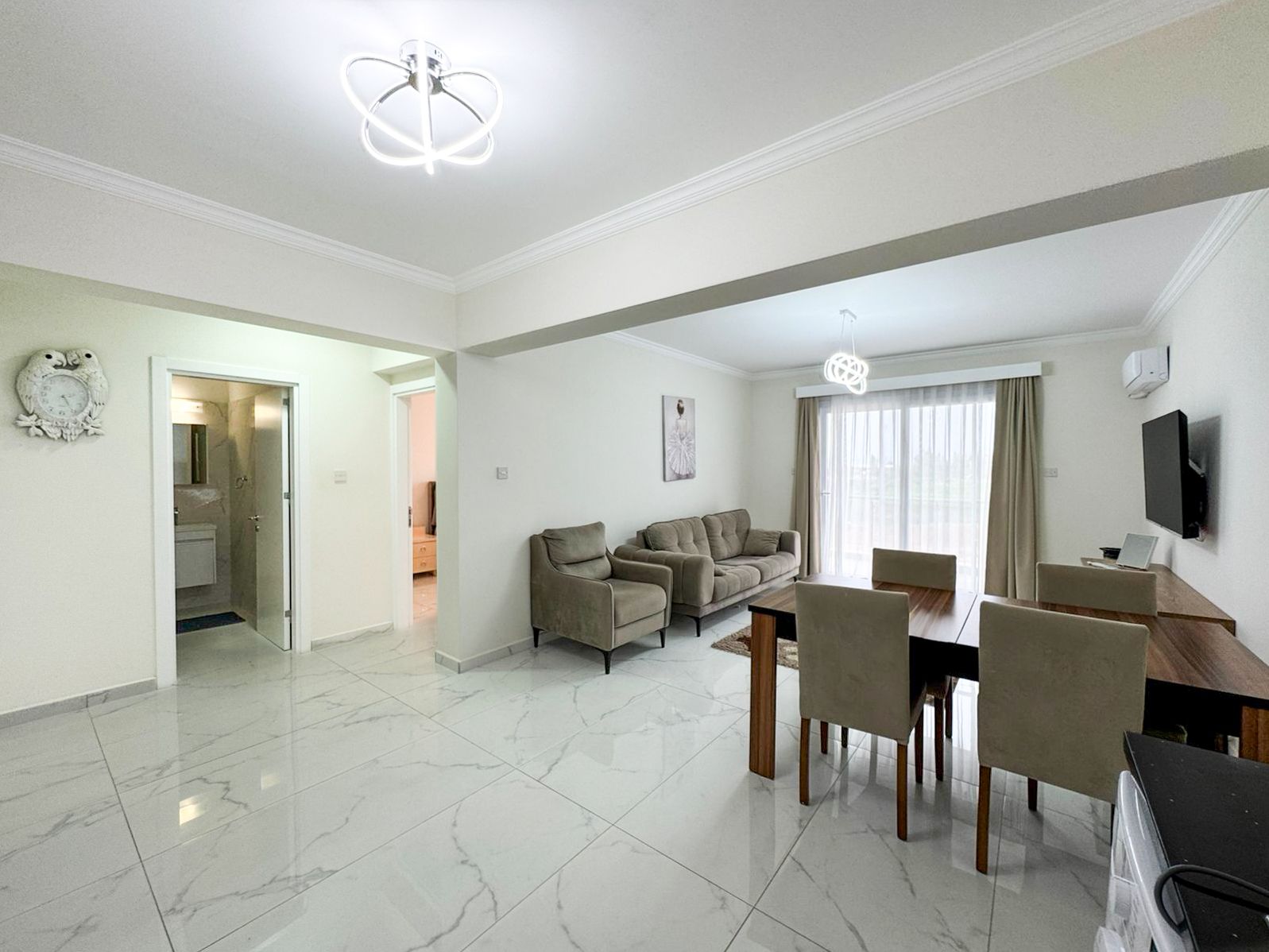 Уютные апартаменты формата 1+1 площадью 60 м² с террасой 16 м² расположены в современном жилом комплексе в Фамагусте. Квартира полностью меблирована, здесь есть просторная гостиная с кухней открытого типа, светлая спальня с большим шкафом и ванная комната с душевой кабиной. Из гостиной предусмотрен выход на террасу с мебелью. Вся техника уже установлена, апартаменты готовы к проживанию или аренде с первого дня.