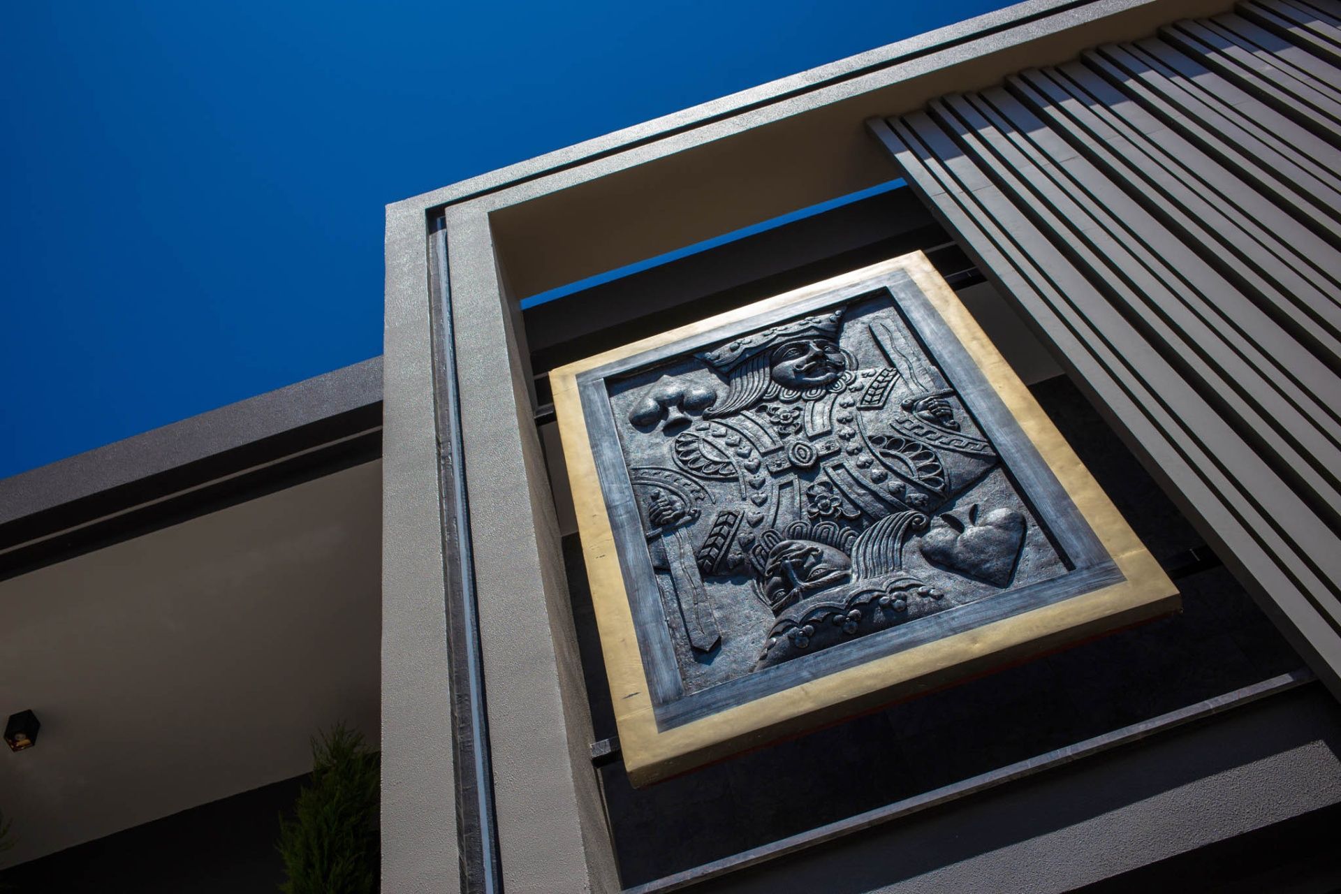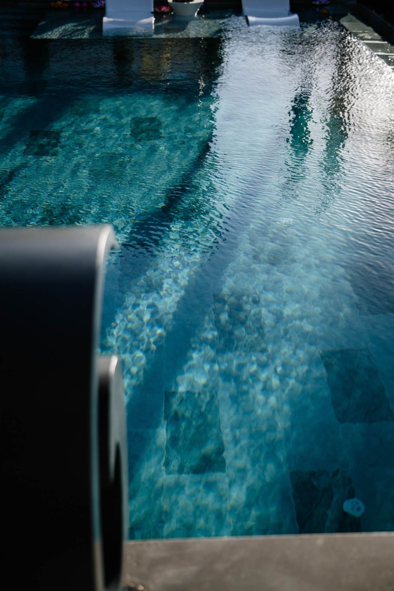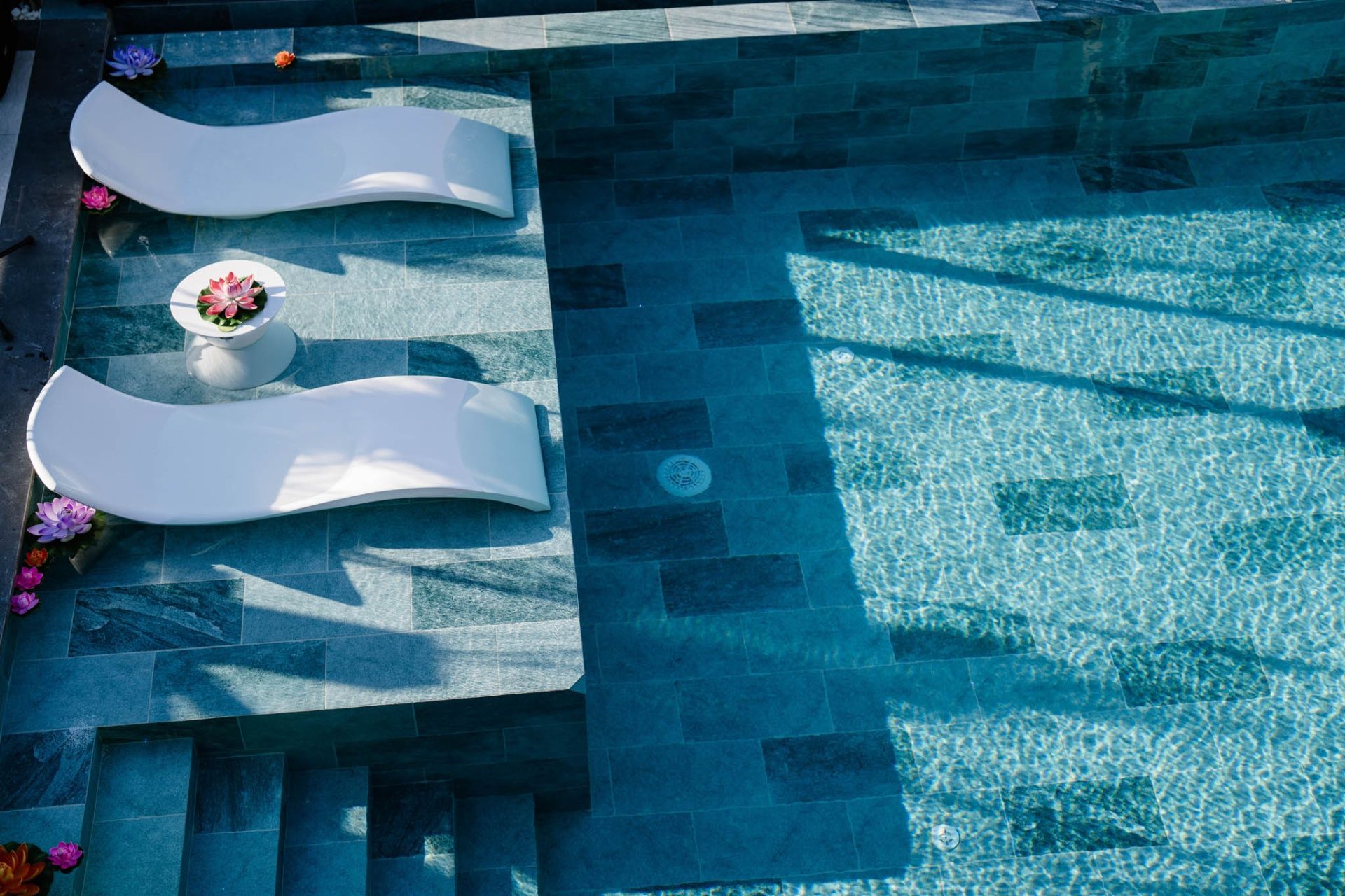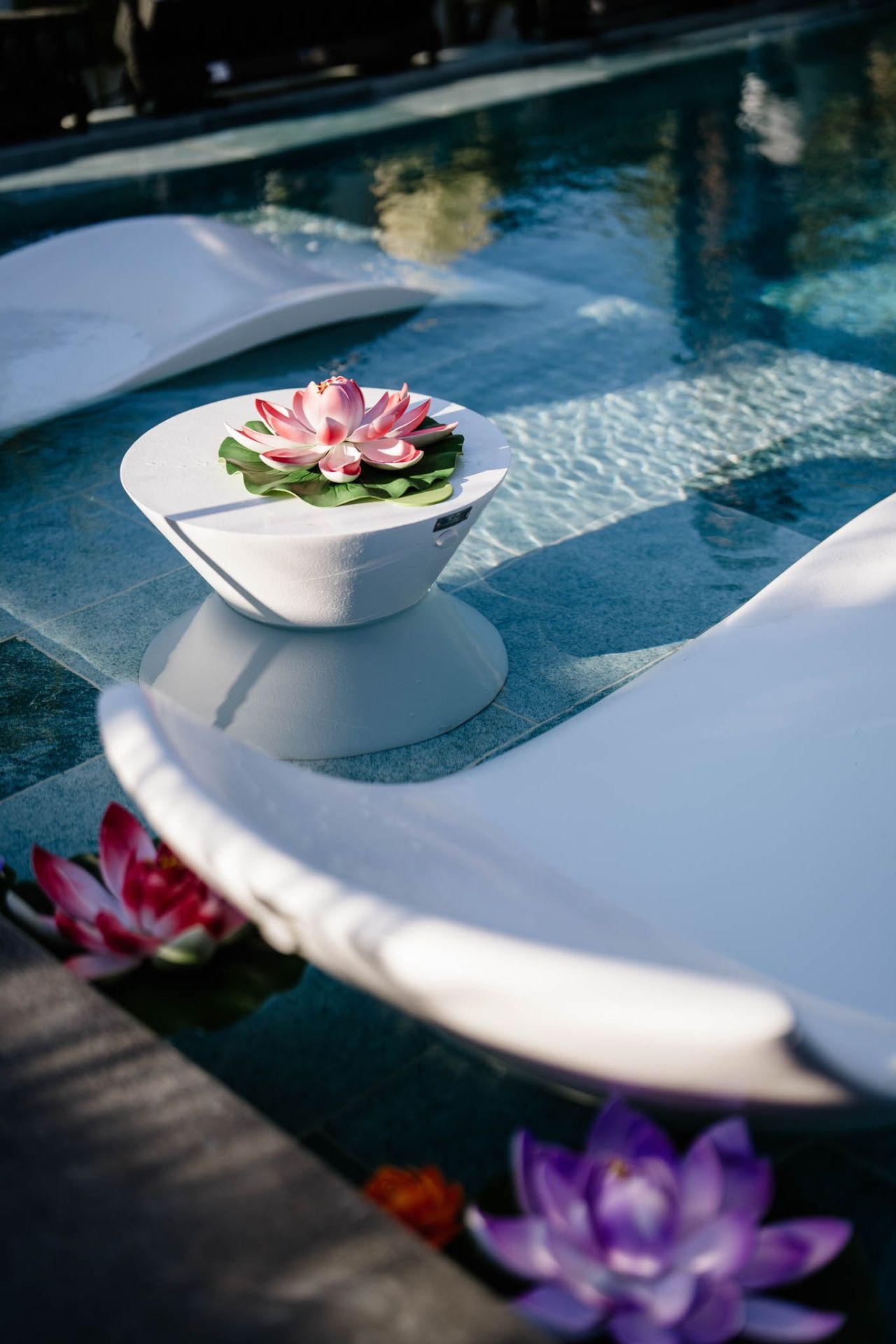 На участке есть частный бассейн с оптоволоконной подсветкой, встроенными лежаками и автоматической системой очистки. Он выглядит особенно эффектно вечером, отражая свет от фасада. Рядом оборудована зона для барбекю и обедов на свежем воздухе, а за счёт ландшафтного дизайна участок остаётся полностью приватным.