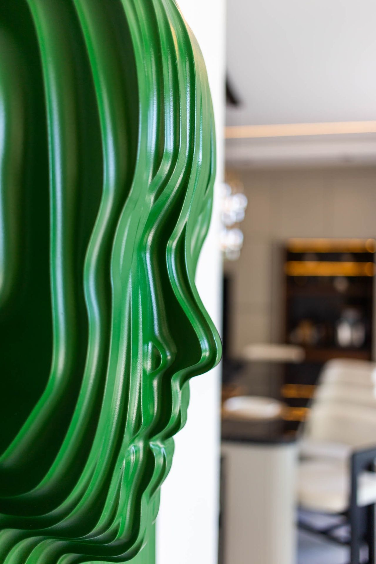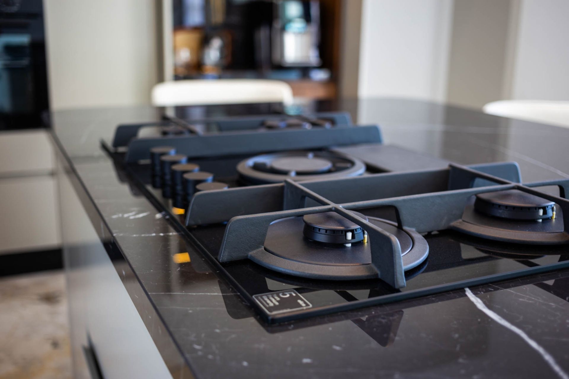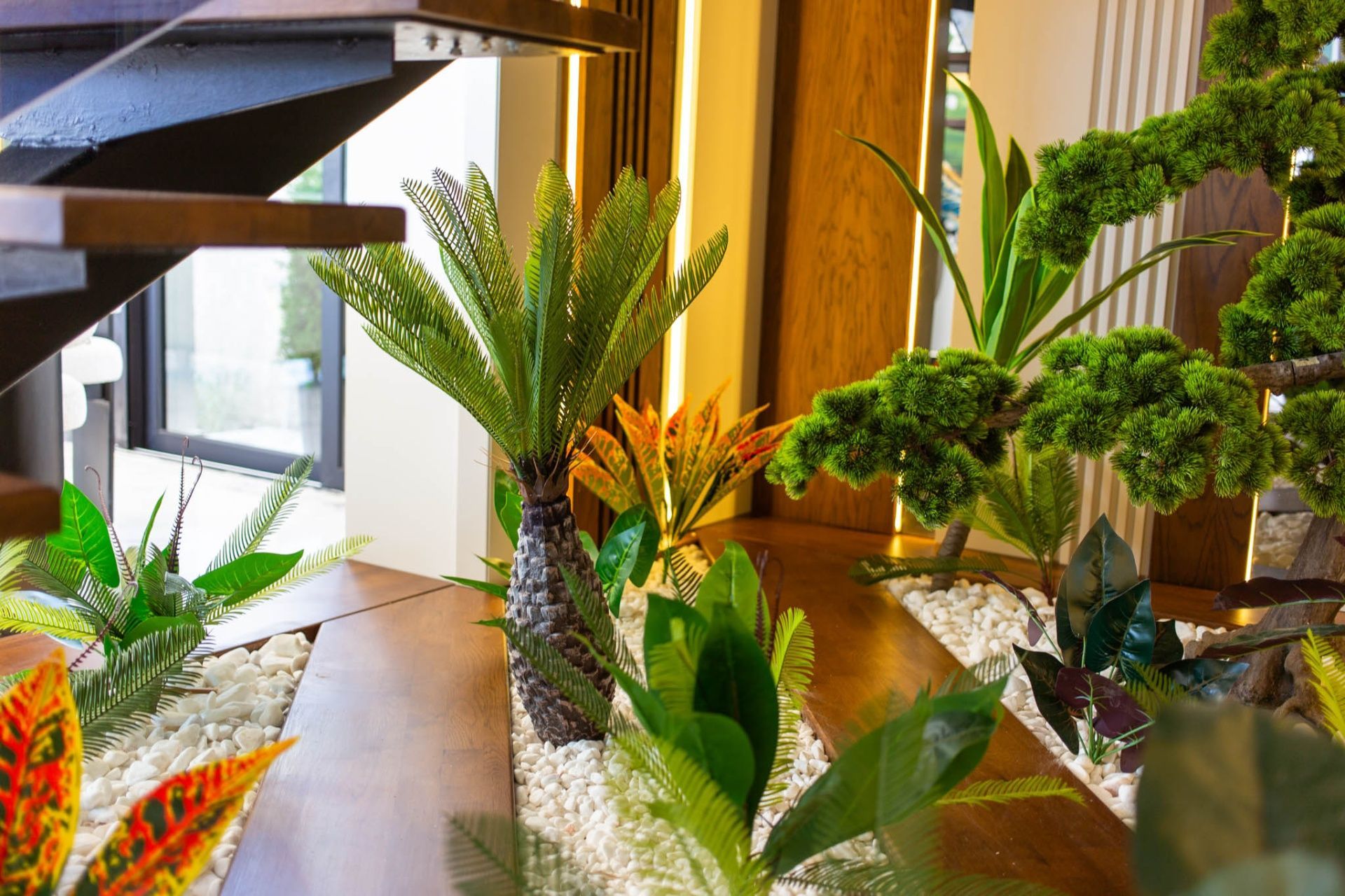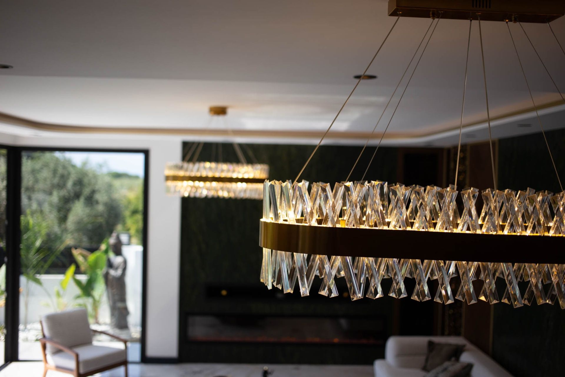 Двухэтажная вилла площадью 264 м² спроектирована в современном архитектурном стиле. На первом этаже просторная гостиная с выходом на террасу и отдельная кухня, выполненная из натурального камня. Всё зонировано так, чтобы пространство оставалось открытым, но приватным, как в лучших интерьерах премиум-отелей. Здесь же расположена гостевая спальня с личным санузлом и гардеробная при входе.