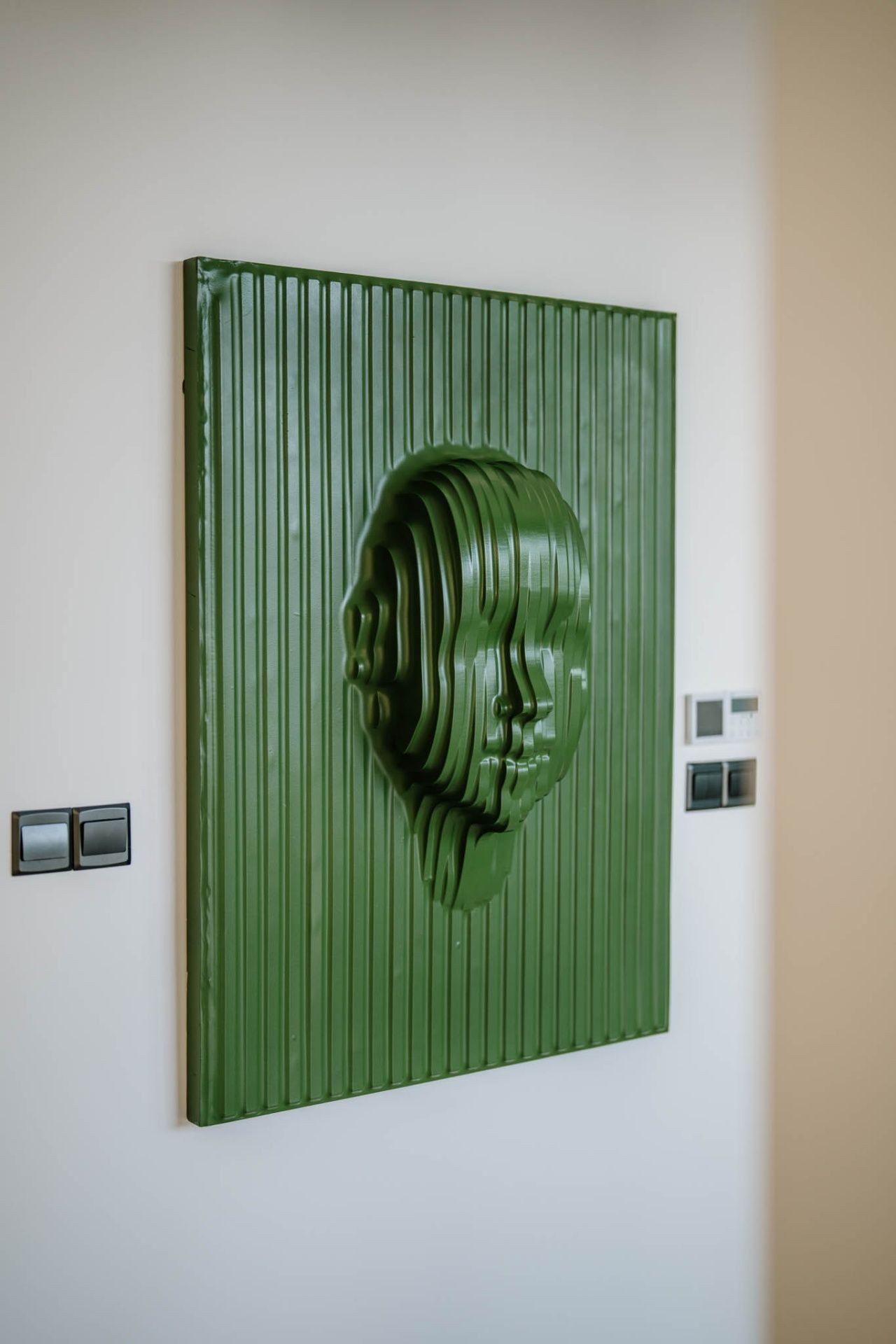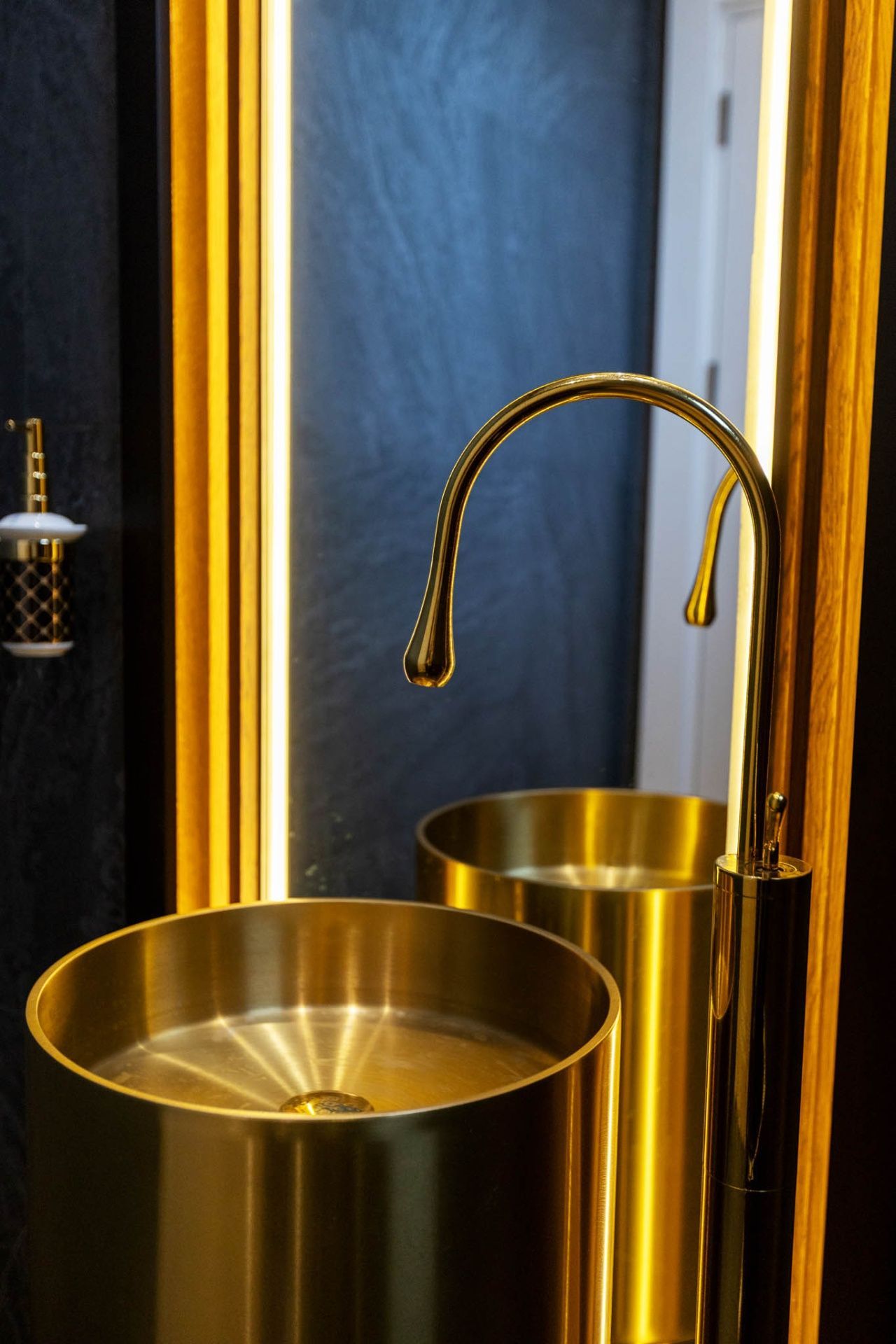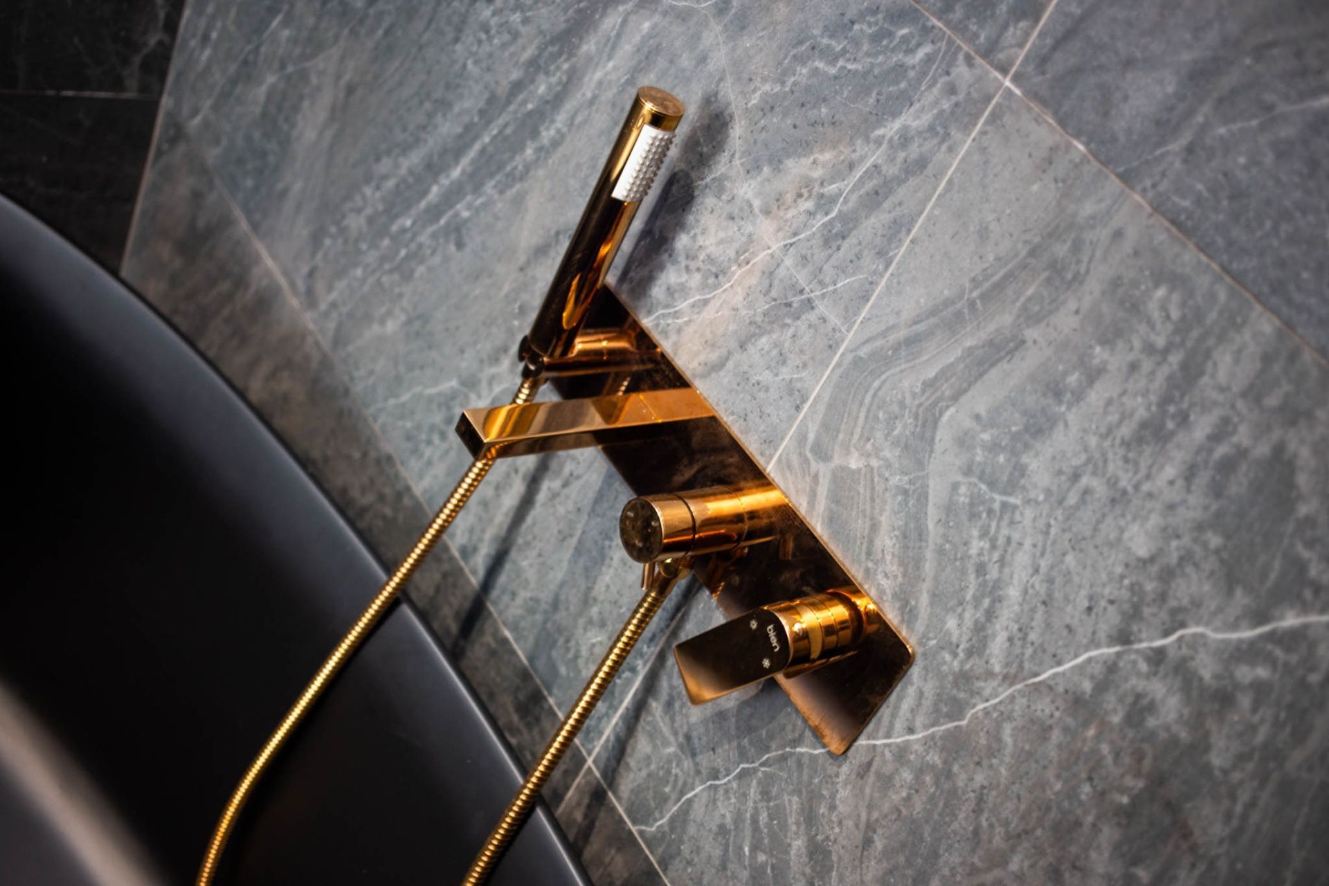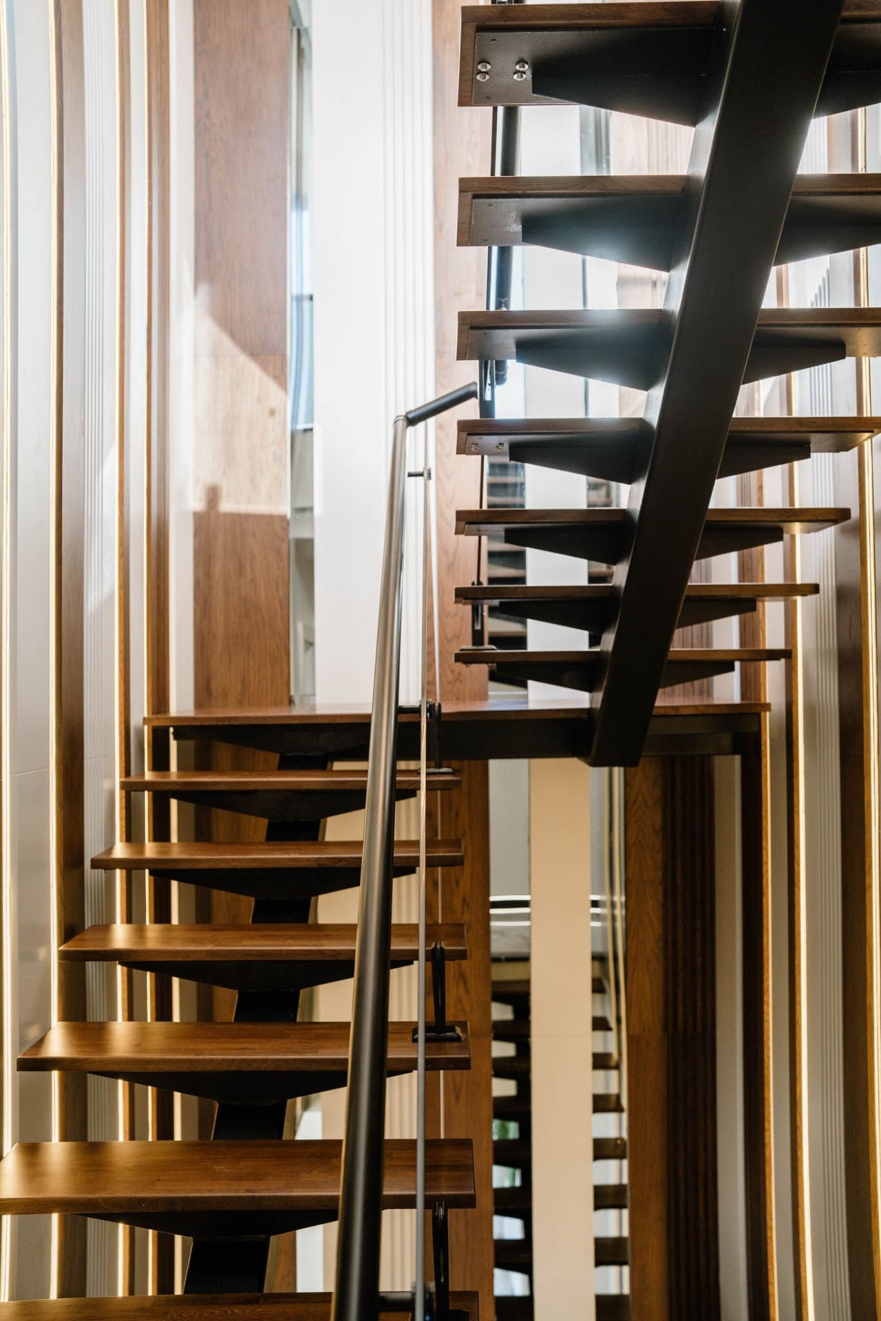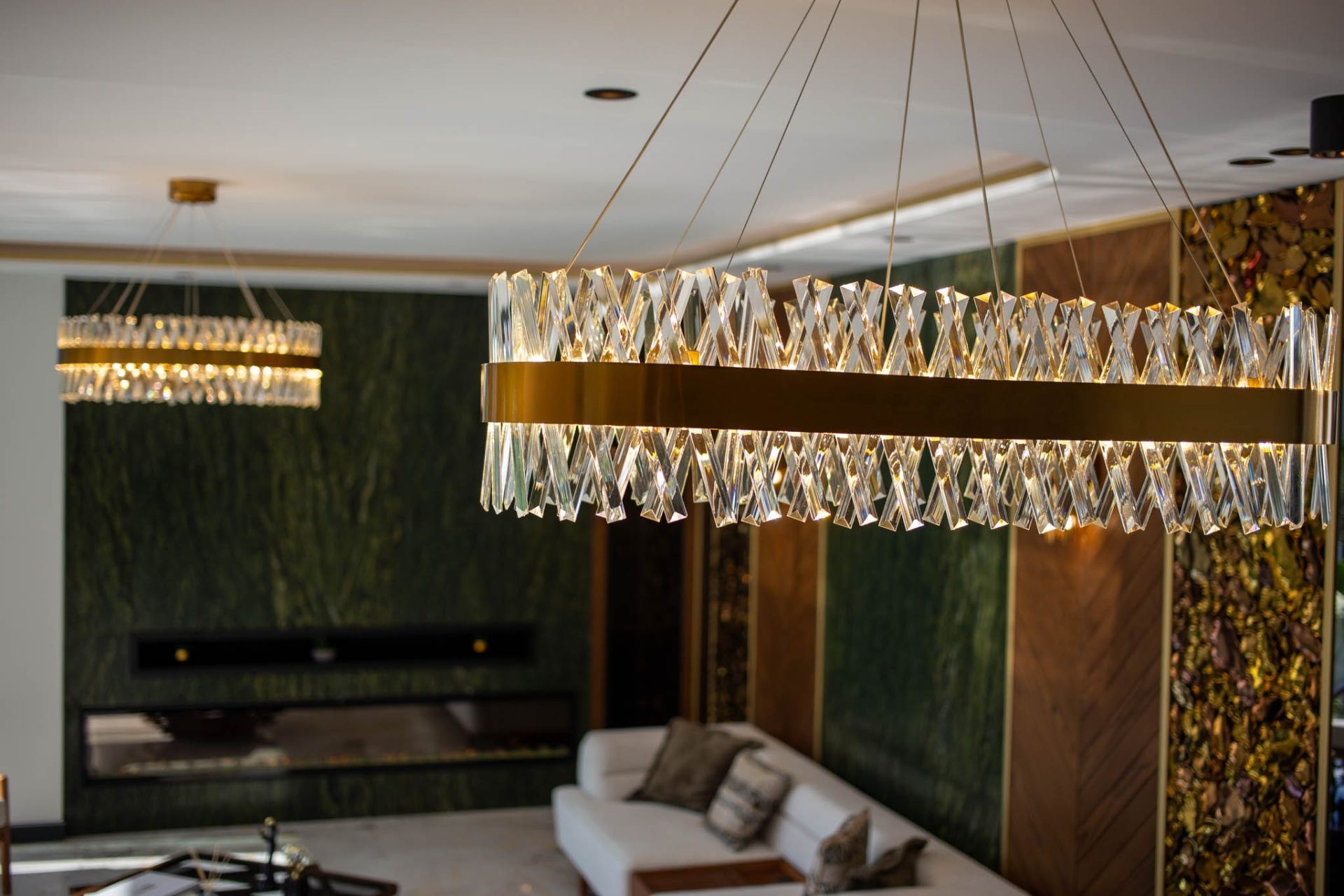 В отделке использованы иранский гранитный мрамор, деревянные панели и испанская плитка. Во всём доме установлена система тёплых полов. Встроенная мебель выполнена на заказ из материалов премиум-класса. Входная дверь с интеллектуальной системой безопасности: отпечаток пальца, пароль и Wi-Fi-управление.