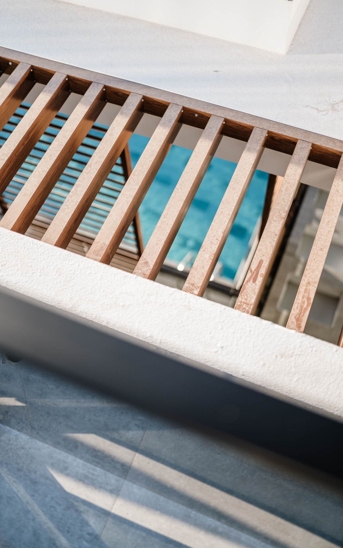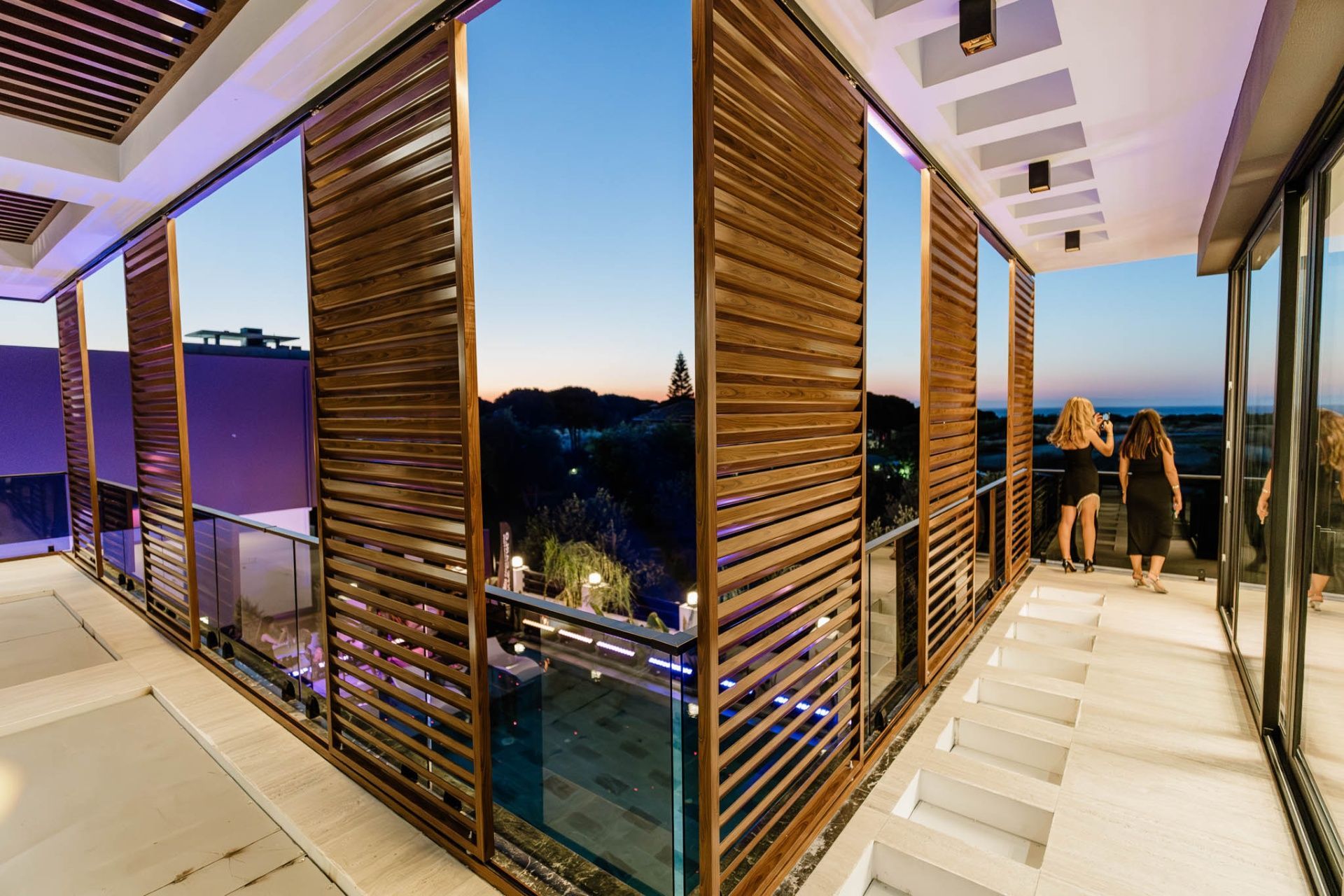 На втором этаже три спальни, каждая со своей ванной комнатой. Главная спальня с отдельной гардеробной и выходом на балкон, откуда открывается вид на море.
