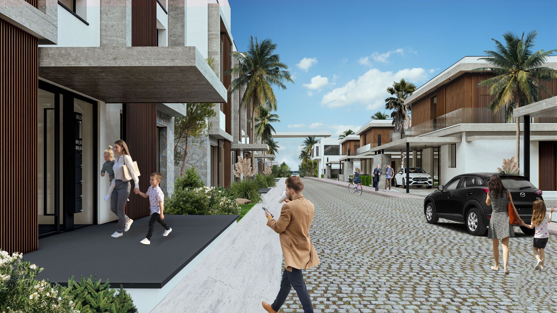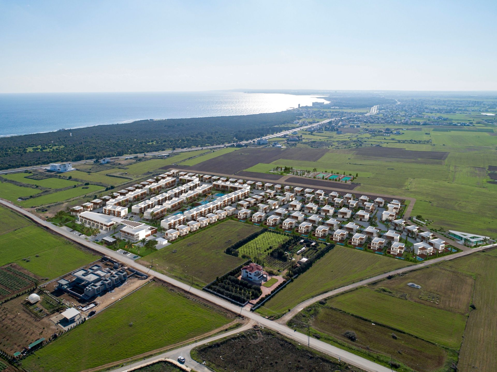 Комплекс расположен в районе Енибогазичи, одном из спокойных и развивающихся районов рядом с побережьем. До моря всего около 900 метров, поэтому пляж находится в пешей доступности. Вблизи есть вся необходимая инфраструктура для жизни: магазины, кафе, сервисы и удобный выезд к основным городам региона. Район ценится за близость к морю, комфортную жилую атмосферу и перспективу роста стоимости недвижимости.