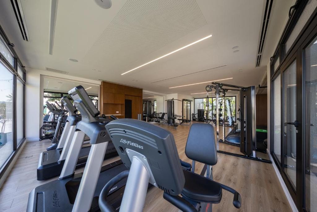 Комплекс предлагает все необходимое для комфортного отдыха: несколько бассейнов с аквапарком, современные фитнес- и спа-центры, детские площадки и игровые зоны, ресторан с изысканной кухней, а также спортивные площадки для баскетбола, волейбола, мини-гольфа и полноценное футбольное поле.