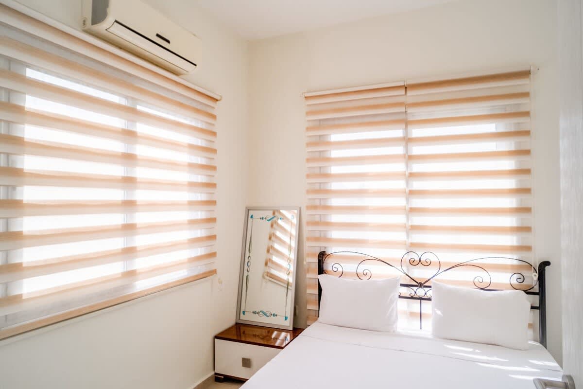 Чудесные апартаменты с двумя спальнями на побережье Средиземного моря! Располагаются в районе Караоланоглу, в нескольких минутах ходьбы от пляжа и магазина. Рядом располагается ресторан "Амбианс", где вы можете душевно провести вечер, наслаждаясь легким морским бризом и прекрасной средиземноморской кухней! А перед сном прогуляться вдоль побережья или полюбоваться закатом.